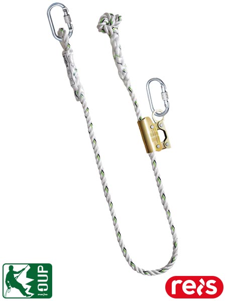Lina z urządzeniem samozaciskowym, ustalająca pozycje podczas pracy.- długość: 2 m- końce liny splecione i pokryte polietylenowym rękawem ochronnym- pętla wyposażona w odporną na ścieranie nasadkę- po jednej stronie liny karabińczyk- urządzenie samozaciskowe wyposażona w stalowy karabińczyk do połączenia z uprzężą użytkownika- trójżyłowa lina poliamidowa o średnicy 14 mm wyposażona w wskaźnik zielony i czarny sygnalizujący stopień zużycia materiału- spełnia wymagania normy EN358