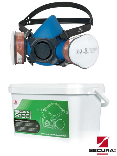 Zestaw SECURA 3100 CHEM.- w skład zestawu wchodzą: silikonowa półmaska SECURA 3100, dwa pochłaniaczy 3031 A2, dwa filty 3000.03 P3 R- wszystkie elementy zestawu spakowane osobno (pochłaniacze spakowane hermetycznie)- stanowi ochronę układu oddechowego przed pyłami, dymami i mgłami, a także parami i gazami organicznymi o temperaturze wrzenia > 65 °C- przeznaczony m.in. do lakierowania, malowania, laminowania, szlifowania, opryskiwania, zabiegach w produkcji roślin pod osłonami oraz zamgławiania- polecana dla użytkowników środków ochrony roślin - chroni przed pestycydami- spełnia wymagania norm: półmaska - EN140, pochłaniacze - EN14387, filtry - EN143