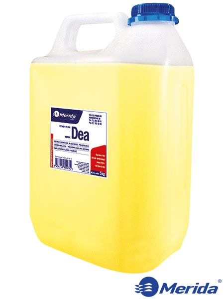 Mydło MERIDA DEA®.- mydło w płynie o dobrych właściwościach myjąco-pielęgnacyjnych- zawiera pochodne lanoliny i inne substancje zapobiegające wysuszaniu skóry- pojemność: 5 kg kanister- posiada wpis do Krajowego Systemu Informacji o Kosmetykach