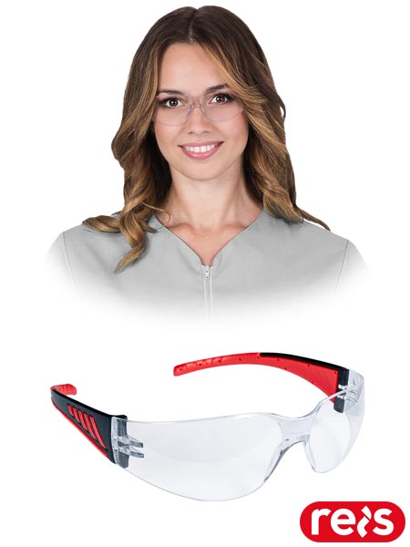 Przeciwodpryskowe okulary ochronne.- klasa optyczna 1- filtr chroniący przed nadfioletem 2C-1.2- zapewniają ochronę przed małymi odpryskami ciał stałych o energii uderzeń do 45 m/s (FT)- szybki wykonane z poliwęglanu- ramiona wykonane z czarno-czerwonej gumy- przeznaczone do ochrony oczu przed odpryskami ciał stałych występujących podczas ręcznej i maszynowej obróbki metali, drewna, tworzyw sztucznych, materiałów ceramicznych, pozyskiwania kopalin itp.- spełniają wymagania normy EN166 oraz EN170