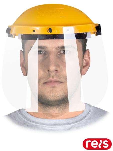 Osłona twarzy składająca się z szybki przeciwodpryskowej, ramki i nagłowia.- klasa optyczna 1- szybka wykonana z poliwęglanu o grubości 1 mm- boczne pokrętła umożliwiają odpowiednie ułożenie szybki względem twarzy- możliwość dopasowania nagłowia do obwodu głowy za pomocą pokrętła- ochrania przed rozbryzgami cieczy- chroni przed małymi odpryskami ciał stałych o energii uderzeń do 120 m/s (B)- spełnia wymagania normy EN166