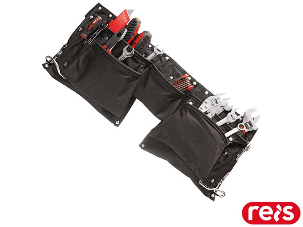 Pas monterski – podwójny.- wykonany z mocnego materiału- dziesięć kieszeni na narzędzia: dwie duże oraz osiem mniejszych- dodatkowo kieszeń między dwiema dużymi - idealna na gwoździe- dwa metalowe uchwyty- regulacja w pasku- wszystkie narzędzia są w zasięgu ręki- idealny dla monterów