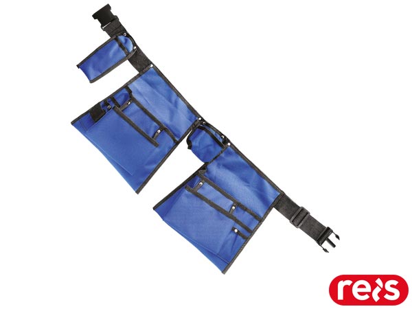 Pas monterski – podwójny.- wykonany z mocnego materiału- dziesięć kieszeni na narzędzia: dwie duże oraz osiem mniejszych- dodatkowa kieszonka między dwiema dużymi i jedna osobno na pasku- solidny uchwyt nawet na ciężkie przedmioty- regulacja w pasku- wszystkie narzędzia są w zasięgu ręki- idealny dla monterów