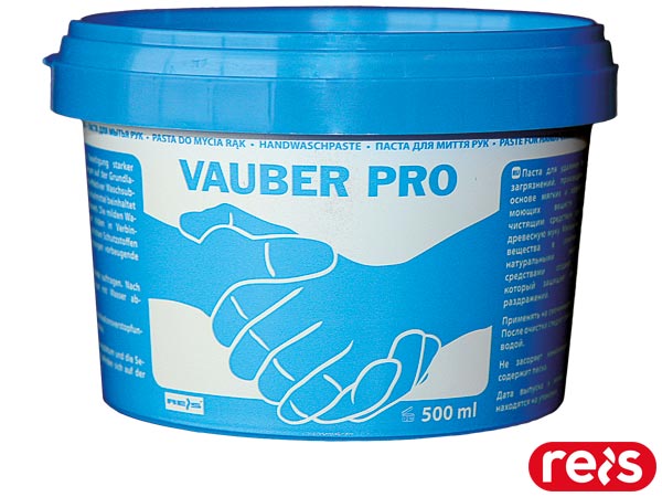 Pasta VAUBER PRO do usuwania mocnych zabrudzeń.- produkowana na bazie łagodnych i skutecznych substancji myjących- jako środek ścierny zawiera mączkę drzewną- łagodne substancje myjące, w połączeniu z naturalnymi środkami ochronnymi tworzą warstwę zapobiegającą podrażnieniom skóry- nie zatyka kanalizacji - bez piasku- produkt zarejestrowany w Krajowym Systemie Informowania o Kosmetykach - posiada Świadectwo Jakości Zdrowotnej- pojemność: 500 ml, 10 l