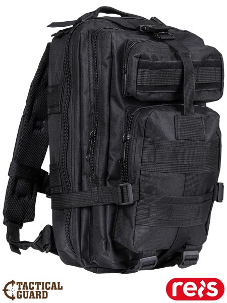 Plecak Tactical Guard.- tkanina 600D Oxford: 100% poliester- wymiary: 44x25x25 cm- pojemność: 30 l- liczne kieszenie- możliwość regulacji szelek oraz grubości plecaka- dedykowany dla miłośników militariów, motocyklistów, motorowerzystów, podróżników, fanów paintballu- idealny dla firm ochroniarskich, leśników i rybaków- sprawdzi się zarówno do pracy, codziennego użytku, wycieczek jak i podczas survivalu