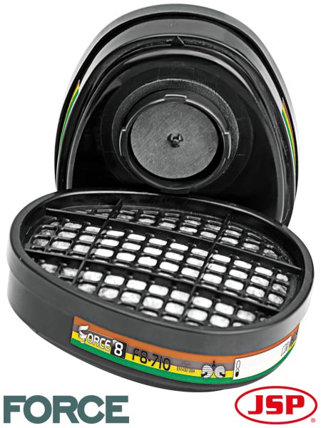 Pochłaniacze wymienne do półmaski FORCE8™ - typ ABEK1.- przeznaczone do gazów, oparów związków organicznych, nieorganicznych i kwasowych oraz do amoniaku- dostępne w woreczku z zawieszką- małe opakowanie 2 szt.- spełniają wymagania normy EN14387