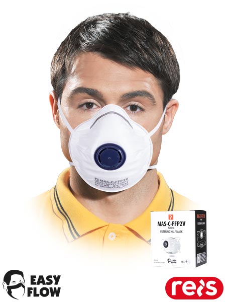 Półmaska przeciwpyłowa z zaworkiem.- typ FFP2: ochrona przed nietoksycznymi lub średnio toksycznymi aerozolami w stanie płynnym lub stałym (np. mgły olejowe) w stężeniach do 12,5xOEL lub 10xAPF (NDS)- zakładana na elastyczne gumki- wentyl wydechowy umiejscowiony z przodu- metalowa klamra na wysokości nosa na zewnętrznej części półmaski- piankowa poduszka chroni nos przed odgnieceniem- półmaska o owalnym kształcie- idealna ochrona przed pyłami i dymem metalicznym, drobnymi cząstkami, mgłą olejową czy ozonem- stosowana przy obróbce drewna i metali, szlifowaniu oraz malowaniu- półmaska o właściwościach antysmogowych- umieszczona w pudełku, które umożliwia wygodną prezentację na wystawie- małe opakowanie 10 szt.- zgodna z normą EN149