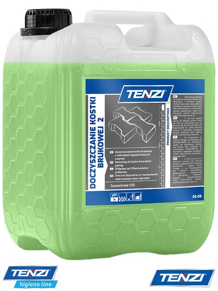 Skoncentrowany preparat do czyszczenia kostki brukowej, DOCZYSZCZANIE KOSTKI BRUKOWEJ 2.- alkaliczny środek do czyszczenia powierzchni betonowych tj. kostka brukowa, płyty betonowe, tarasy brukowane, podjazdy oraz chodniki- doskonale rozpuszcza tłuszcze w ogródkach restauracji, brud drogowy, pozostałości liści drzew, olej samochodowy, smary oraz paliwa- zalecany do efektywnego mycia posadzek przemysłowych w garażach podziemnych, halach produkcyjnych, centrach logistycznych, ciągach komunikacyjnych, itp.- preparat niskopieniący- pojemność: 1 l, 5 l