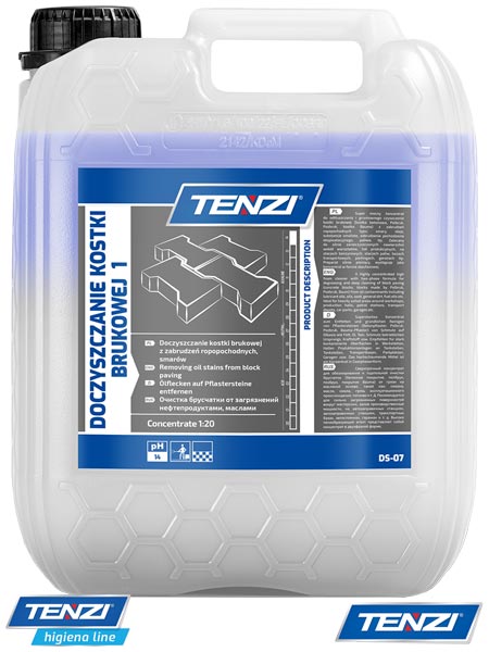 Skoncentrowany preparat do czyszczenia kostki brukowej, DOCZYSZCZANIE KOSTKI BRUKOWEJ 1.- wyjątkowo mocny koncentrat do odtłuszczania i gruntownego czyszczenia kostki brukowej z zabrudzeń ropopochodnych- doskonale usuwa smary, oleje, substancje smoliste, zabrudzenia pochodzenia eksploatacyjnego, paliwa, itp.- zalecany do efektywnego mycia silnie zanieczyszczonych nawierzchni wokół warsztatów, hal produkcyjnych, na stacjach benzynowych, stacjach paliw, bazach transportowych, parkingach, garażach itp.- preparat silnie pieniący- występuje jako koncentrat w formie dwufazowej- pojemność: 1 l, 5 l