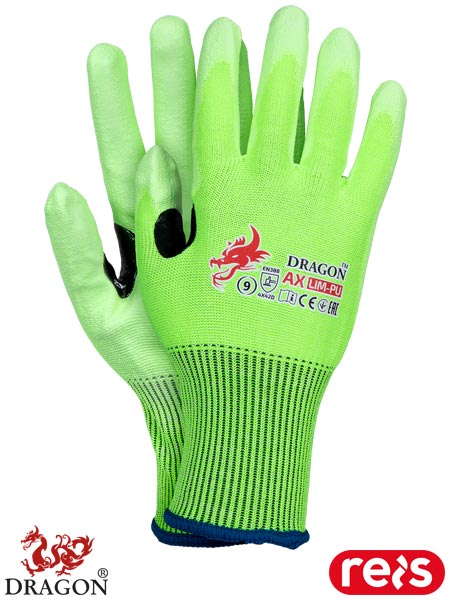 Rękawice ochronne.- dzianina: połączenie przędzy UHMWPE (ultra high molecular weight polyethylene) i włókna szklanego (ścieg 13)- powlekane poliuretanem- zakończone ściągaczem- dodatkowe wzmocnienie pomiędzy kciukiem a palcem wskazującym wykonane z czarnego nitrylu- wysoki współczynnik odporności na przecięcie (D) oraz najwyższy współczynnik odporności na ścieranie (4) i rozdarcie (4)- idealne do pracy z ostrymi narzędziami, brzegami blach, rur czy szkła- wykorzystywane do ogólnych prac mechanicznych- zgodne z normami EN388 (poziomy odporności: 4 X 4 2 D) oraz EN ISO 21420