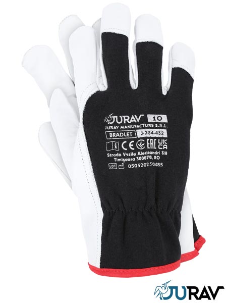 Rękawice ochronne.- skóra kozia licowa- wierzch wykonany z dzianiny interlock- całodłonicowe - część chwytna wykonana z jednego kawałka skóry, dzięki czemu wykazują większą wytrzymałość i odporność na przetarcia- marszczenie w nadgarstku sprawia, że rękawica lepiej przylega do dłoni- popularnie stosowane do ogólnych prac mechanicznych
