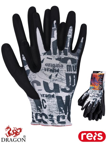 Rękawice ochronne.- dzianina: 96% poliester, 4% elastan (ścieg 15)- powlekane nitrylem typu FOAM- zakończone ściągaczem- wykazują bardzo dużą elastyczność oraz świetnie dopasowują się do dłoni- zapewniają manualność oraz doskonałe czucie trzymanego przedmiotu- nitryl zwiększa odporność na smary i oleje- wykorzystywane do ogólnych prac mechanicznych- polecane do prac z ekranami dotykowymi- w pakiecie znajdują się 3 pary- każdy pakiet posiada zawieszkę, która umożliwia wszelkiego rodzaju prezentacje