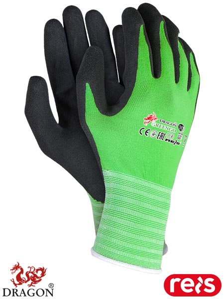 Rękawice ochronne.- dzianina: 95% nylon, 5% elastan (ścieg 15)- powlekane lateksem typu SANDY FINISH- zakończone ściągaczem- lateks wykazuje odporność na detergenty oraz kwasy- elastyczne, dzięki czemu świetnie dopasowują się do dłoni