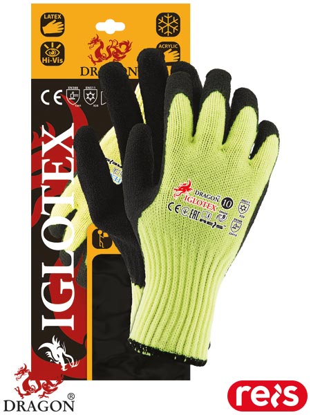 Rękawice ochronne ocieplane.- dzianina: 100% pętelkowa przędza akrylowa (ścieg 7)- powlekane lateksem- zakończone ściągaczem- wysoka odporność na rozdarcia- idealne do prac w niskiej temperaturze zewnętrznej, stosowane na magazynach, jak również w chłodniach- wykorzystywane w budownictwie oraz przemyśle transportowym- ze względu na fluorescencyjną tkaninę idealne dla drogowców- każda para pakowana w osobną torebkę, która umożliwia wszelkiego rodzaju prezentacje- zgodne z normami EN388 (poziomy odporności: 2 2 4 1 X), EN511 (poziomy odporności: X 2 X) oraz EN420