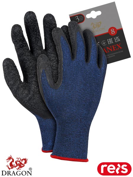 Rękawice ochronne.- dzianina: 60% poliester, 40% elastan (ścieg 13)- powlekane lateksem o chropowatej strukturze zapewniającej doskonałą chwytność, nie powodując usztywnienia rękawicy- zakończone ściągaczem- w pakiecie znajdują się 3 pary- każdy pakiet posiada zawieszkę, dzięki czemu świetnie się prezentują i są idealne na wszelkiego rodzaju prezentacje- stosowane w budownictwie oraz przemyśle transportowym