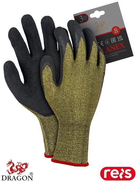 Rękawice ochronne.- dzianina: 60% poliester, 40% elastan (ścieg 13)- powlekane lateksem o chropowatej strukturze zapewniającej doskonałą chwytność, nie powodując usztywnienia rękawicy- zakończone ściągaczem- w pakiecie znajdują się 3 pary- każdy pakiet posiada zawieszkę, dzięki czemu świetnie się prezentują i są idealne na wszelkiego rodzaju prezentacje- stosowane w budownictwie oraz przemyśle transportowym