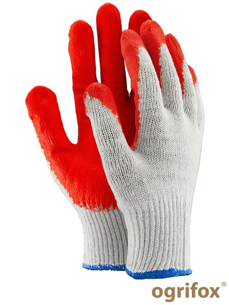 Rękawice ochronne.- dzianina: 65% bawełna, 35% poliester (ścieg 10)- powlekane lateksem- zakończone ściągaczem- idealnie nadają się do wszelkiego rodzaju prac mechanicznych oraz w gospodarstwach domowych