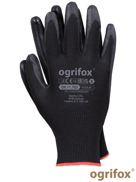 Rękawice ochronne.- dzianina: 100% poliester (ścieg 13)- powlekane lateksem typu smooth- zakończone ściągaczem- lateks wykazuje odporność na detergenty oraz kwasy- elastyczne, dzięki czemu świetnie dopasowują się do dłoni- zapewniają doskonałą manualność- wykorzystywane w budownictwie oraz przemyśle transportowym