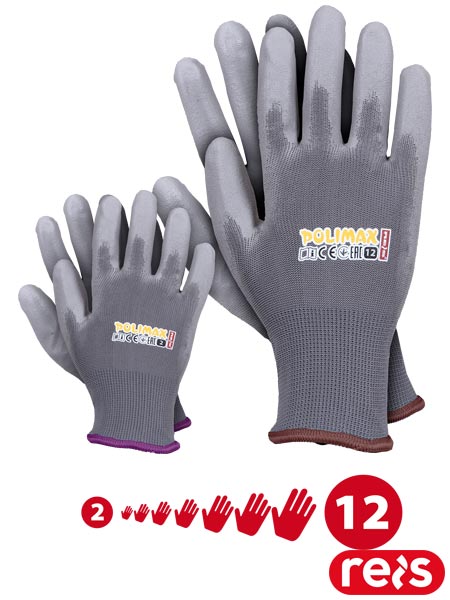 Rękawice ochronne.- dzianina: 100% poliester (ścieg 15 dla rozmiarów 2-5, ścieg 13 dla rozmiarów 6-12)- powlekane poliuretanem- zakończone ściągaczem- zapewniają manualność oraz doskonałe czucie trzymanego przedmiotu- wykazują bardzo dużą elastyczność oraz świetnie dopasowują się do dłoni- idealne do prac, gdzie wymagana jest precyzja- idealne dla całej rodziny