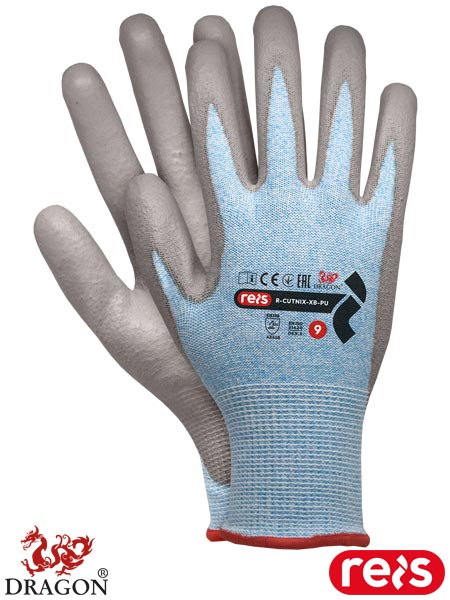 Rękawice ochronne.- dzianina: połączenie przędzy UHMWPE (ultra high molecular weight polyethylene) i włókna szklanego (ścieg 13)- powlekane poliuretanem- zakończone ściągaczem- najwyższy współczynnik odporności na ścieranie (4) oraz rozdarcie (4)- zgodne z normami EN388 (poziomy odporności: 4 X 4 1 B) oraz EN420