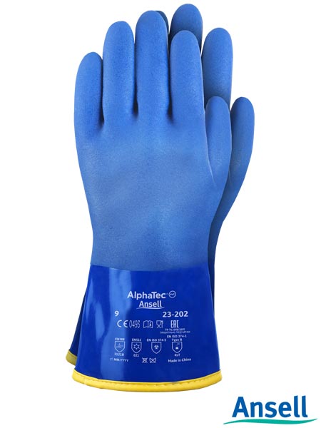 Rękawice ochronne ocieplane AlphaTec® 23-202.- dzianinowa bezszwowa wyściółka akrylowa od wewnątrz- powlekane PCV typu SANDY FINISH- szorstka powierzchnia ułatwia chwytanie mokrych, śliskich przedmiotów- dopuszczone do kontaktu z żywnością- znajdują zastosowanie w przetwórstwie spożywczym, przetwórstwie chemicznym i przygotowaniu chemikaliów, przetwórstwie owoców morza, chłodniach oraz przy pracach porządkowych- zgodne z normami EN388 (poziomy odporności: 3 1 2 1 B), EN ISO 374-1 (K L T, TYP B), EN ISO 374-5, EN511 (poziomy odporności: 0 2 1) oraz EN ISO 21420