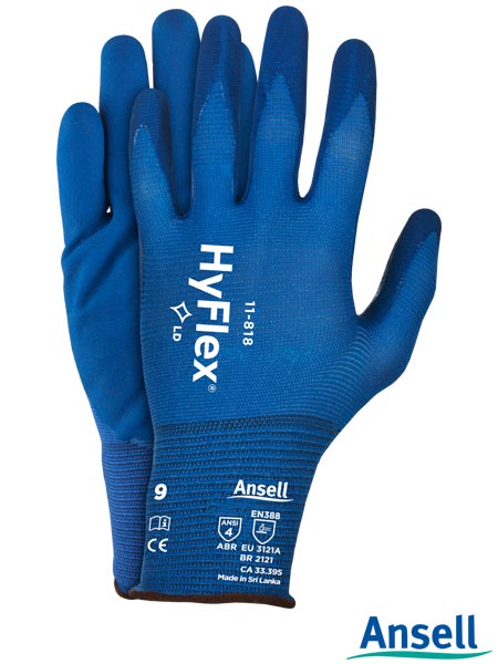 Rękawice ochronne HyFlex® 11-818, powlekane nitrylem.- wykonane z nylonu i spandexu (ścieg 18)- niezwykle cienka powłoka pianki nitrylowej FORTIX™ jest w warunkach grożących obtarciami do trzech razy trwalsza niż w przypadku porównywalnych materiałów, co znacząco przedłuża czas użytkowania rękawic, a także zapewnia bardziej niezawodny chwyt na sucho i jest o 20% bardziej przewiewna niż inne materiały - efekt to chłodniejsze, bardziej suche oraz mniej spocone dłonie- zakończone ściągaczem- bezszwowa nylonowo-spandeksowa wyściółka daje odczucie jak przy pracy gołymi rękami - jest przewiewna, wygodna i zapewnia zwiększoną wrażliwość na opuszkach palców, przydatną przy precyzyjnych pracach- dzięki zastosowanej technologii Ansell ZONZ® Comfort Fit rękawice lepiej dopasowują się do naturalnego kształtu ludzkiej dłoni, zapewniając lepszą ochronę, przewiewność i większy zakres wykonywanych ruchów- znajdują zastosowanie przy pracach montażowych, obsłudze linii produkcyjnych, precyzyjnych pracach mechanicznych