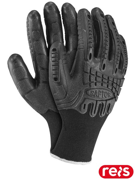 Rękawice ochronne.- wykonane z bawełny i włókien poliuretanowych- powlekane miękkim tworzywem TPR o specjalnej strukturze stanowiącej doskonałą barierę dla słabych uderzeń i drgań- nie tracą elastyczności nawet w niskich temperaturach- rozciągliwe i wytrzymałe- zakończone ściągaczem- wygodne w użytkowaniu - nie stwarzają trudności w operowaniu narzędziem- grubsza warstwa TPR na kostkach i palcach zabezpiecza przed uderzeniami- wykorzystywane w budownictwie oraz przemyśle transportowym