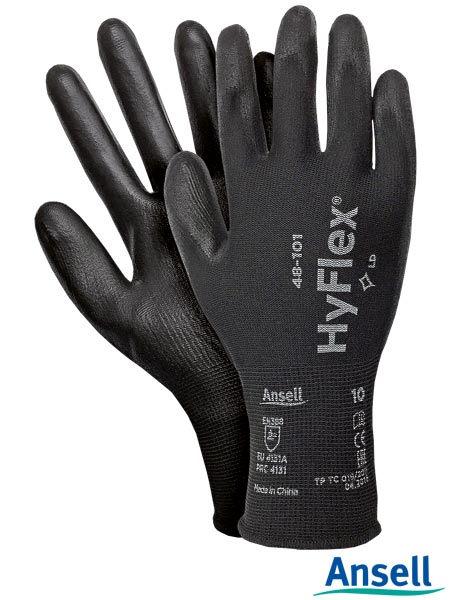 Rękawice ochronne Hyflex® 48-101.- wykonane z nylonu (ścieg 13)- powlekane poliuretanem- zakończone ściągaczem- zaprojektowane do zastosowań wymagających wysokiego komfortu oraz ochrony przed obtarciami- umożliwiające precyzyjne chwytanie małych obiektów w suchym lub lekko oleistym środowisku- zapewniają zręczność oraz trwałość- znajdują zastosowanie przy lekkich pracach montażowych oraz montażu, kontroli i pakowaniu małych elementów