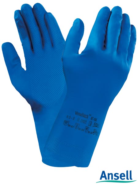 Rękawice ochronne AlphaTec® 87-195- wykonane z lateksu- wewnętrzna powierzchnia rękawic pokryta jest bawełną flokowaną, co ułatwia wkładanie i zdejmowanie oraz zapobiega poceniu się rąk w czasie użytkowania- specjalna obróbka celem zmniejszenia ryzyka reakcji alergicznych- powleczenie w kształcie rybiej łuski na części chwytnej zapewnia doskonałą chwytność- dopuszczone do kontaktu z żywnością- znajdują zastosowanie przy przetwarzaniu mięsa, ryb, owoców, warzyw oraz przy pracach porządkowych