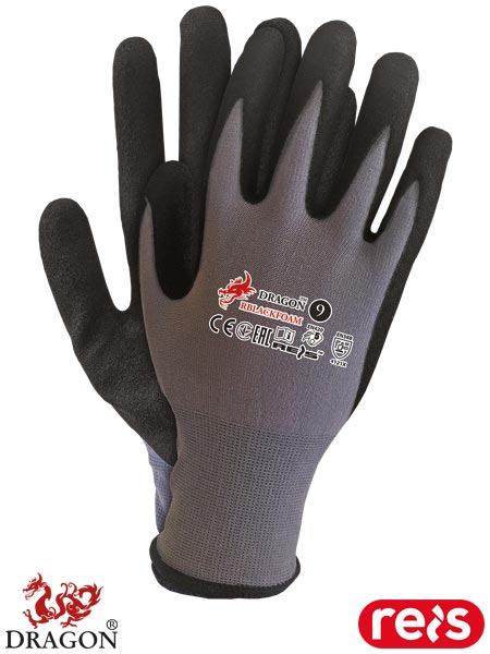 Rękawice ochronne.- dzianina: 100% nylon (ścieg 15)- powlekane spienionym nitrylem typu FOAM- zakończone ściągaczem- najwyższy współczynnik odporności na ścieranie (4)- nitryl zwiększa odporność na smary, oleje, tłuszcze i węglowodory, a technologia FOAM zwiększa elastyczność rękawicy- zapewniają manualność oraz doskonałe czucie trzymanego przedmiotu- wykorzystywane do ogólnych prac mechanicznych