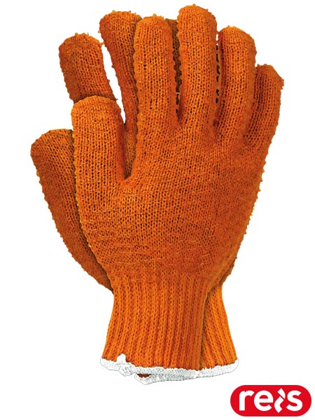 Rękawice ochronne zakończone ściągaczem.- wykonane z dzianiny: 100% poliester w kolorze pomarańczowym (ścieg 7)- dwustronnie powlekane siatką PCV- znakomicie przylegają do śliskich powierzchni, zapewniając doskonałą chwytność- idealne przy pracach przeładunkowych oraz w przemyśle meblarskim- doskonałe dla szklarzy, do przenoszenia śliskich przedmiotów