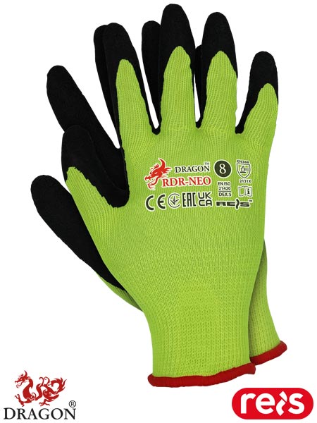 Rękawice ochronne.- dzianina: połączenie poliestru i bawełny (ścieg 10)- powlekane lateksem o porowatej strukturze, dzięki czemu zachowują świetną przyczepność, przy czym nie tracą swojej elastyczności- zakończone ściągaczem- trudnościeralne i odporne na zużycie- odporne na rozdarcie i powstawanie pęknięć- stosowane w budownictwie oraz przemyśle transportowym- wytrzymałość i wysoka jakość gwarantują zadowolenie użytkowników
