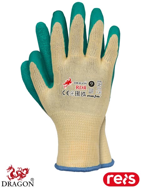 Rękawice ochronne.- dzianina: połączenie poliestru i bawełny (ścieg 10)- powlekane lateksem- zakończone ściągaczem- trudnościeralne i odporne na zużycie- odporne na rozdarcie i powstawanie pęknięć- stosowane w budownictwie oraz przemyśle transportowym- wytrzymałość i wysoka jakość gwarantują zadowolenie użytkowników