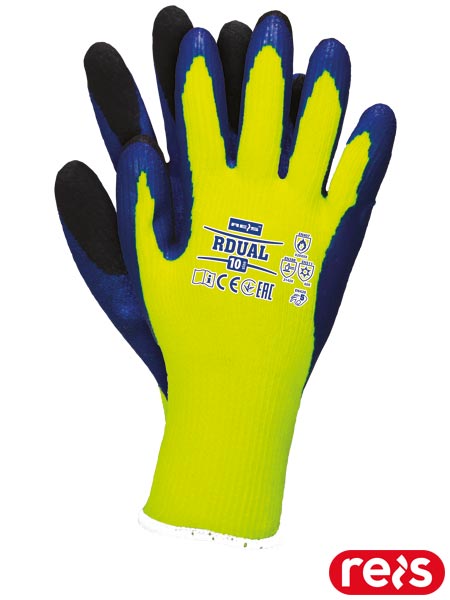 Rękawice ochronne ocieplane.- dzianina: 100% poliester (ścieg 7)- powlekane lateksem- dodatkowe powleczenie czarnym lateksem na końcówkach palców- zakończone ściągaczem- odporne na ciepło kontaktowe do 250°C- wytrzymałość i wysoka jakość gwarantują zadowolenie użytkowników- idealne do prac w niskiej temperaturze zewnętrznej, stosowane na magazynach, jak również w chłodniach- wykorzystywane w budownictwie oraz przemyśle transportowym