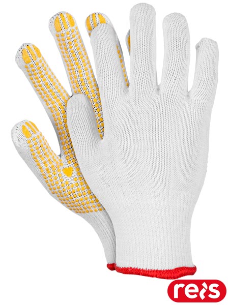 Rękawice ochronne.- dzianina: 50% poliester, 50% bawełna (ścieg 10)- jednostronne nakropienie z PCV na części dłonicowej zapewnia dobrą chwytność podczas przenoszenia towarów, a także zwiększa trwałość rękawicy- zakończone ściągaczem- połączenie poliestru z bawełną tworzy rękawice rozciągliwą, a zarazem przewiewną i bardziej wytrzymałą- idealne w przemyśle transportowym- sprawdzają się w budownictwie