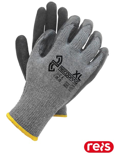Rękawice ochronne.- dzianina: połączenie bawełny i poliestru (ścieg 10)- powlekane lateksem- zakończone ściągaczem- odporne na rozdarcie i powstawanie pęknięć- trudnościeralne i odporne na zużycie- stosowane w budownictwie oraz przemyśle transportowym