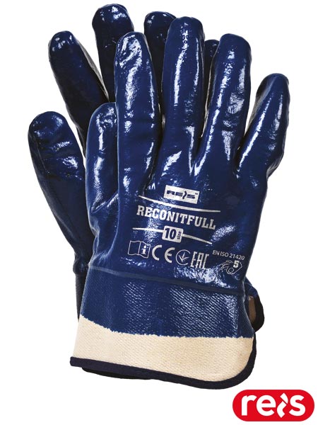 Rękawice ochronne.- dzianina: 100% bawełna- część wierzchnia i chwytna powlekana nitrylem- zakończone usztywnianym mankietem- odporne na ścieranie, przetarcie czy też przebicie- zapewniają manualność- nitryl zwiększa odporność na smary, oleje, tłuszcze i węglowodory- sprawdzają się w miejscach, gdzie następuje kontakt z wyżej wymienionymi substancjami- zachowują swoją formę i tym samym mogą być prane- nitryl ulega biodegradacji, dzięki czemu rękawice nitrylowe są bezpieczne dla środowiska- doskonałe dla mechaników, wykorzystywane podczas przeładunku i transportu