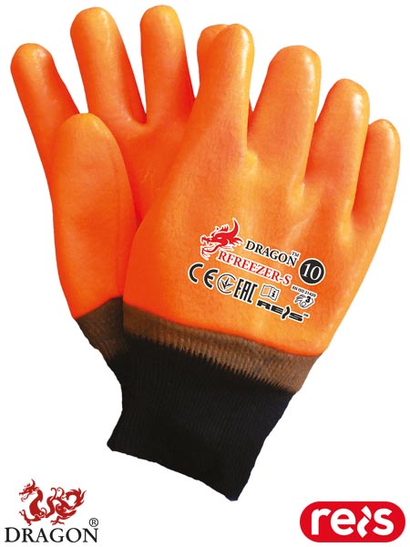 Rękawice ochronne ocieplane.- dzianina: 100% bawełna- ocieplane flanelą bawełnianą w połączeniu z gąbką- powlekane PCV- zakończone dzianinowym ściągaczem