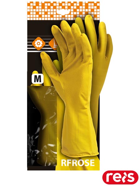 Rękawice ochronne gumowe flokowane.- 100% kauczuk naturalny- wewnętrzna powierzchnia pokryta flokiem (pyłem bawełnianym), co ułatwia wkładanie i zdejmowanie rękawic oraz zapobiega poceniu się rąk w czasie użytkowania- na części chwytnej chropowata struktura dzięki czemu rękawiczki zyskują lepszą przyczepność- grubość części chwytnej: 0,46 mm- odporne na rozciąganie- wysoka odporność na detergenty i środki piorące- doskonale sprawdzą się w gospodarstwach domowych- wykorzystywane do ogólnych prac mechanicznych- każda para pakowana w osobną torebkę, dzięki czemu świetnie się prezentują i są idealne na wszelkiego rodzaju prezentacje- potocznie zwane jako floki lub rękawice gospodarcze