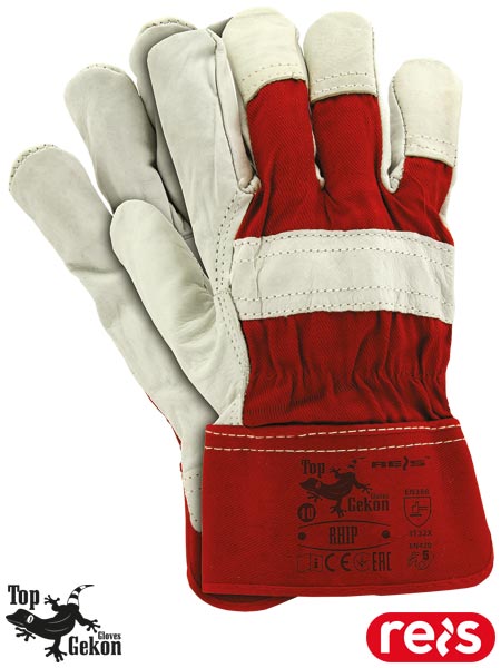 Rękawice ochronne wzmacniane skórą bydlęcą.- jasne kolory wysokiej jakości skóry bydlęcej licowej typu LUX- drelich i usztywniony mankiet w kolorze czerwonym i czarnym- całodłonicowe - część chwytna rękawicy wykonana z jednego kawałka skóry, dzięki czemu wykazują większą wytrzymałość i odporność na przetarcia- od wewnątrz wypodszewkowane, co podnosi komfort użytkowania- popularnie stosowane do ogólnych prac mechanicznych- wykorzystywane w budownictwie, przemyśle ciężkim
