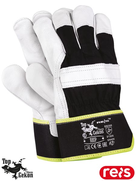 Rękawice ochronne wzmacniane skórą bydlęcą.- jasne kolory wysokiej jakości skóry bydlęcej licowej typu LUX- drelich i usztywniony mankiet w kolorze czerwonym i czarnym- całodłonicowe - część chwytna rękawicy wykonana z jednego kawałka skóry, dzięki czemu wykazują większą wytrzymałość i odporność na przetarcia- od wewnątrz wypodszewkowane, co podnosi komfort użytkowania- popularnie stosowane do ogólnych prac mechanicznych- wykorzystywane w budownictwie, przemyśle ciężkim