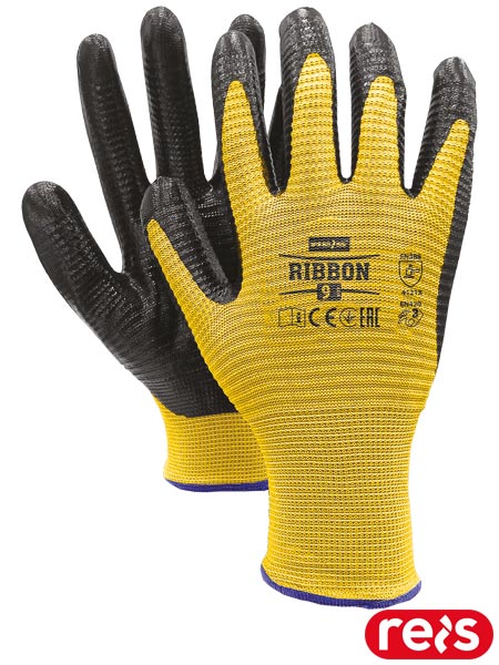 Rękawice ochronne.- dzianina: 100% poliester (ścieg 13)- powlekane nitrylem- zakończone ściągaczem- prążkowana struktura materiału- najwyższy współczynnik odporności na ścieranie (4)- nitryl zwiększa odporność na smary, oleje, tłuszcze i węglowodory- wykorzystywane do ogólnych prac mechanicznych- zgodne z normami EN388 (poziomy odporności: 4 1 2 1 X) oraz EN420
