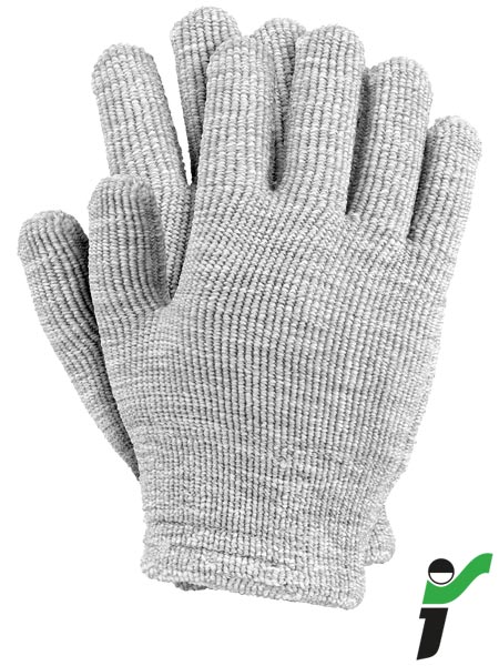 Rękawice ochronne dziane.- wykonane z bawełny i poliestru- bezszwowe- odporne na ciepło kontaktowe do 250°C- zgodne z normami EN420, EN388 (poziomy odporności: 4 3 4 1 X) oraz EN407 (poziomy odporności: X 2 X X X X)