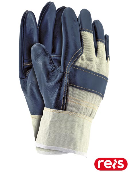 Rękawice ochronne wzmacniane skórą bydlęcą w ciemnych kolorach.- skóra bydlęca licowa z przeszyciem na dłoni- mankiet i wierzch rękawicy z drelichu- popularnie stosowane do ogólnych prac mechanicznych- wykorzystywane w budownictwie, przemyśle ciężkim