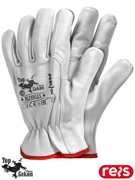 Rękawice ochronne wykonane z wysokiej jakości skóry koziej.- skóra kozia licowa w białym kolorze- całodłonicowe - część chwytna rękawicy wykonana z jednego kawałka skóry, dzięki czemu wykazują większą wytrzymałość i odporność na przetarcia- całoskórzane, czyli w całości wykonane ze skóry, włącznie z mankietem- marszczenie w nadgarstku sprawia, iż rękawica świetnie przylega do dłoni- miękka skóra wysokiej jakości zapewniająca doskonały komfort pracy- popularnie stosowane do ogólnych prac mechanicznych, w budownictwie oraz przemyśle ciężkim