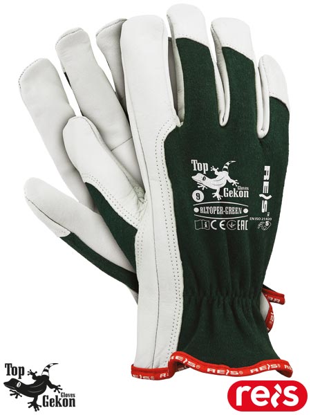 Rękawice ochronne wykonane z wysokiej jakości skóry koziej.- skóra kozia licowa w jasnych kolorach- wierzch wykonany z elastycznej tkaniny w zielonym kolorze, dzięki czemu idealnie dopasowują się do dłoni- miękka kozia skóra wysokiej jakości zapewnia doskonały komfort pracy i zadowolenie nawet najbardziej wymagającego klienta- popularnie stosowane do ogólnych prac mechanicznych- doskonałe dla kierowców oraz kadry kierowniczej