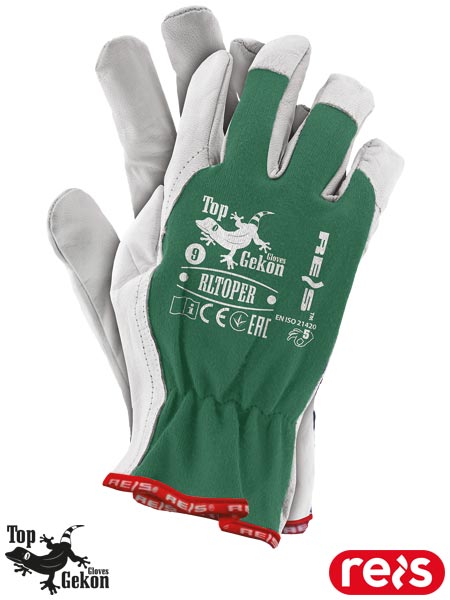 Rękawice ochronne wykonane z wysokiej jakości skóry koziej.- skóra kozia licowa w jasnych kolorach- wierzch wykonany z elastycznej tkaniny, dzięki czemu idealnie dopasowują się do dłoni- całodłonicowe - część chwytna rękawicy wykonana z jednego kawałka skóry, dzięki czemu wykazują większą wytrzymałość i odporność na przetarcia- miękka kozia skóra wysokiej jakości zapewnia doskonały komfort pracy i zadowolenie nawet najbardziej wymagającego klienta- popularnie stosowane do ogólnych prac mechanicznych- doskonałe dla kierowców oraz kadry kierowniczej