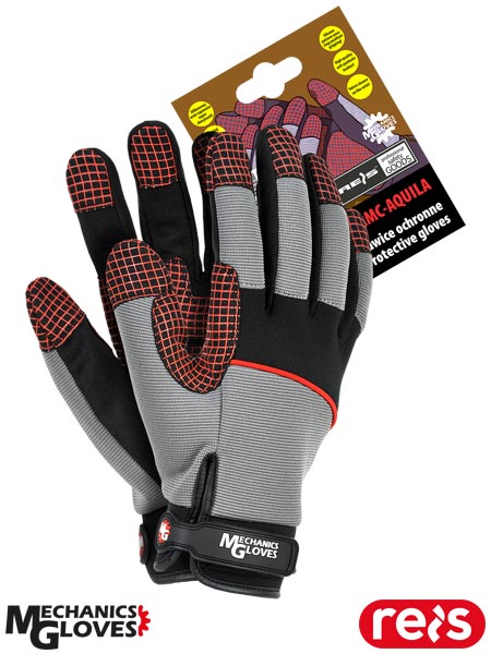 Rękawice ochronne wykonane z wysokiej jakości skóry syntetycznej połączonej z tkaniną.- część wierzchnia rękawicy wykonana ze streczu, na kostkach dodatkowa wstawka z neoprenu- na części chwytnej powlekane silikonowym wzorem zapewniającym doskonałą chwytność- w nadgarstku zapięcie na rzep velcro, które umożliwia wygodną regulację- dodatkowe wzmocnienie pomiędzy kciukiem a palcem wskazującym- wysoka jakość skóry tworzy te rękawice bardzo wytrzymałymi i odpornymi na zużycie- wykorzystywane w przemyśle motoryzacyjnym- każda para posiada zawieszkę, dzięki czemu świetnie się prezentują i są idealne na wszelkiego rodzaju prezentacje
