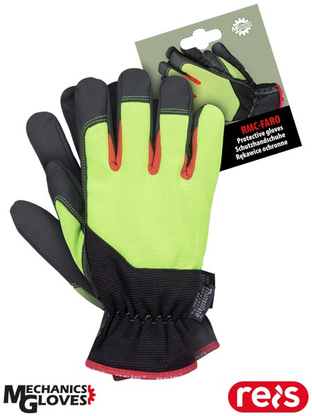 Rękawice ochronne ocieplane.- wykonane ze skóry syntetycznej Microthan- część wierzchnia wykonana ze spandexu- ocieplane wkładką Thinsulate- na końcówkach palców dodatkowe wzmocnienie, co zwiększa wytrzymałość rękawicy- marszczenie w nadgarstku sprawia, iż rękawica przylega do dłoni i lepiej chroni przed dostaniem się do jej wnętrza wiatru czy piasku- popularnie stosowana do ogólnych prac mechanicznych- polecane dla kierowców, drogowców oraz kadry kierowniczej- każda para posiada zawieszkę, dzięki czemu świetnie się prezentują i są idealne na wszelkiego rodzaju prezentacje- zgodne z normą EN ISO 21420