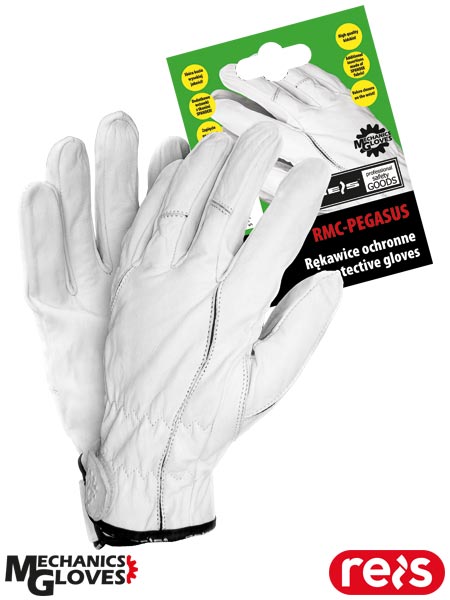 Rękawice ochronne wykonane z wysokiej jakości skóry z kozy.- skóra kozia licowa w jasnych kolorach- całodłonicowe - część chwytna rękawicy wykonana z jednego kawałka skóry, dzięki czemu wykazują większą wytrzymałość i odporność na przetarcia- całoskórzane, czyli w całości wykonane ze skóry, włącznie z mankietem- marszczenie w nadgarstku sprawia, iż rękawica świetnie przylega do dłoni i o wiele lepiej chroni przed dostaniem się do jej wnętrza wiatru czy piasku- zapięcie na rzep w nadgarstku umożliwia wygodną regulację rękawicy- dodatkowe wstawki z tkaniny spandex zapewniają lepsze dopasowanie oraz wentylację- miękka skóra wysokiej jakości - doskonały komfort pracy, bez utraty odporności- dokładne wykonanie - doskonale się prezentują i sprawdzają w trudnych warunkach- doskonałe dla kierowców oraz kadry kierowniczej- każda para posiada zawieszkę, dzięki czemu świetnie się prezentują i są idealne na wszelkiego rodzaju prezentacje